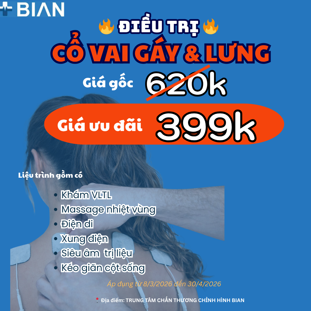 Bạn đang vật vã vì những cơn đau nhức cổ vai gáy và vùng lưng dai dẳng mỗi ngày? Đừng bỏ lỡ siêu ưu đãi giải quyết triệt để cơn đau tại Trung Tâm Chấn Thương Chỉnh Hình BIAN!