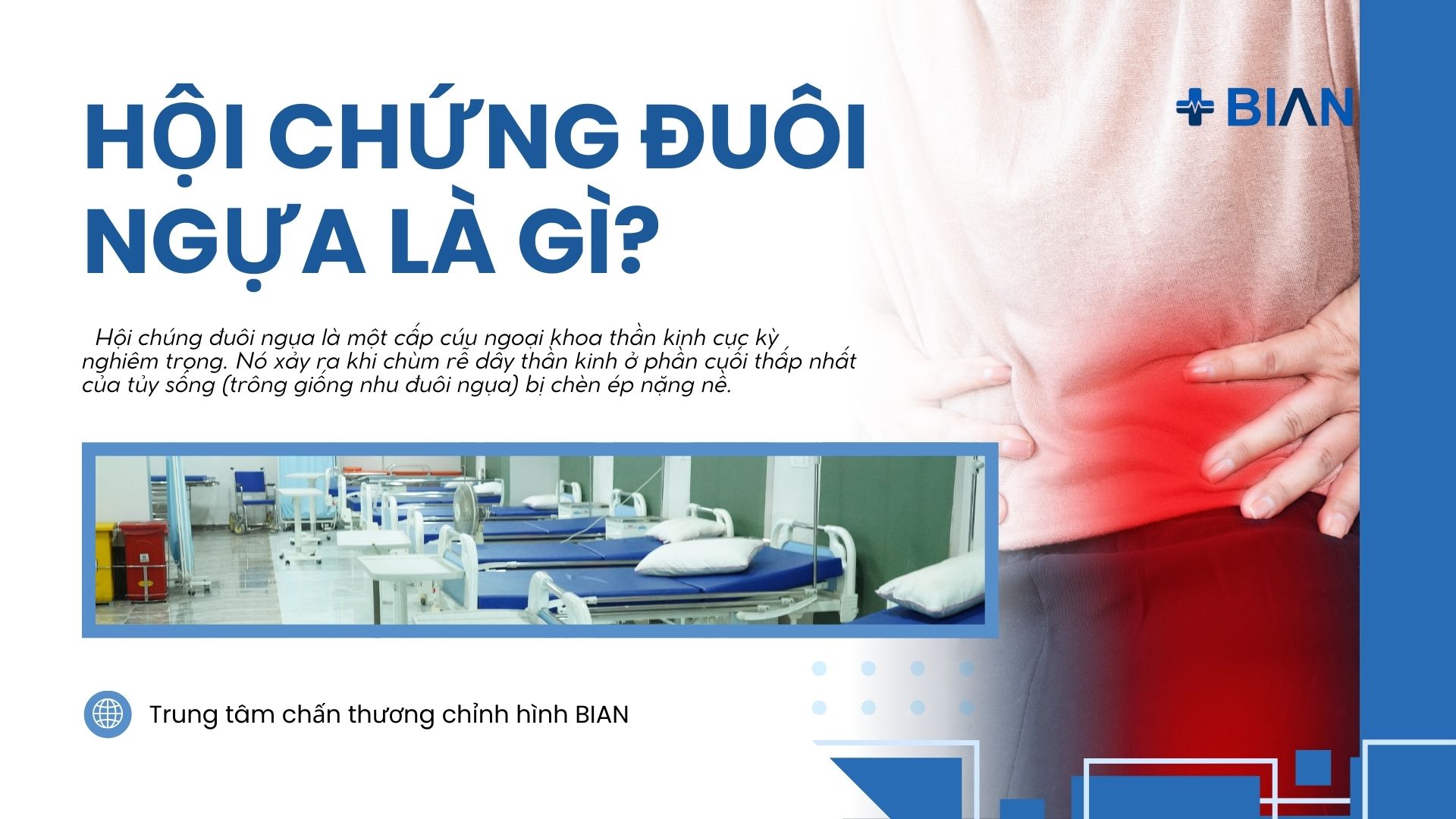 Hội chứng đuôi ngựa là một cấp cứu ngoại khoa thần kinh cực kỳ nghiêm trọng. Nó xảy ra khi chùm rễ dây thần kinh ở phần cuối thấp nhất của tủy sống (trông giống như đuôi ngựa) bị chèn ép nặng nề.